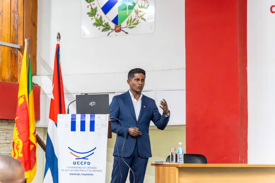 Mr. Kasun Pelawaththa, a Sri Lankan student of the University of Physical Culture and Sports Sciences (UCCFD) in Cuba, has successfully completed his PhD in Sport studies. Mr. Kasun Pelawaththa presented his thesis in front of a panel of professors at the University. H.E. Mr. Mahinda Ratnayake, Ambassador in Cuba, attended the event